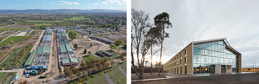 Gewinner Deutscher Nachhaltigkeitspreis Architektur 2023: U-Halle Mannheim, Hütten & Paläste ©BUGA 2023 gGmbH | Gewinner Deutscher Nachhaltigkeitspreis Architektur 2020: Alnatura Campus Darmstadt, haascookzemmrich Studio2050 ©Brigida Gonzalez