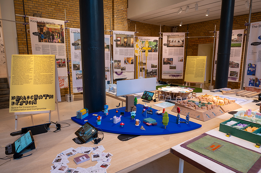 The exhibition presents notable projects, buildings, tools and spatial interventions by studios, collectives and initiatives, showing how inclusive planning and design processes can strengthen democratic participation and a shared sense of responsibility for the built environment. Alongside projects from across Europe, a special focus on Berlin highlights the city as a vibrant centre of democratic design. The exhibition design – developed by ANA (architecture) und Rimini Berlin (graphic design) – reflects the core ideas of Democratic Design, using a variety of media – texts, photographs, plans, films, objects, games and models – to create an accessible and engaging experience. A reading corner with selected literature invites visitors to explore further. The exhibition is presented in three languages – German, simple German and English – and is aimed at a broad, diverse audience.