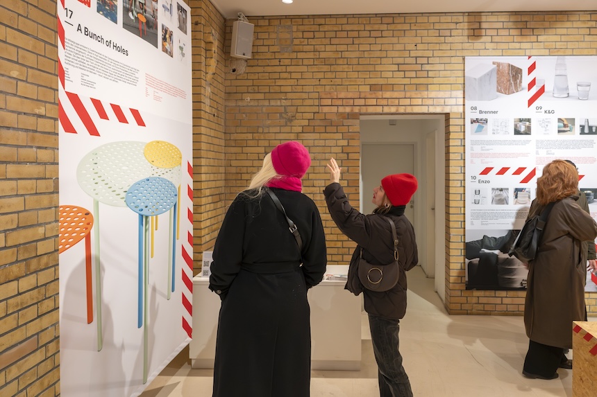 • A Bunch of Holes, a table and three stools, AT, 2022