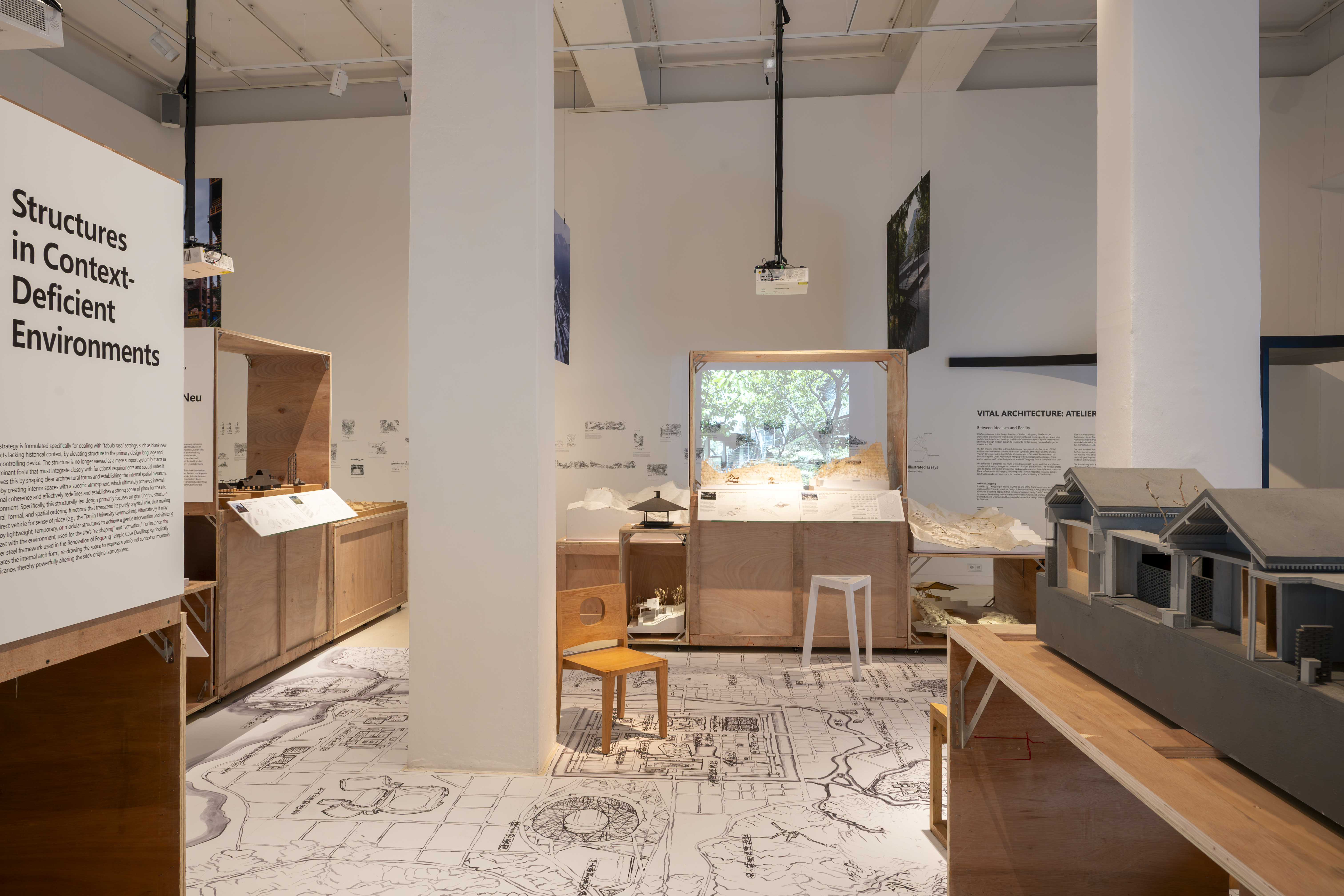 The exhibition at Aedes organises the projects into five spatial strategies: Introverted Gardens in the City; Symbiosis of the New and the Old on 'Ruins'; Structures in Context-Deficient Environments; Clustered Shelters Based on Structural-Spatial Units; Architecture Merging with Topographical Landscape. Despite varying scales, these works share a common goal: to develop architecture as a living system that balances environment, structure and human experience.