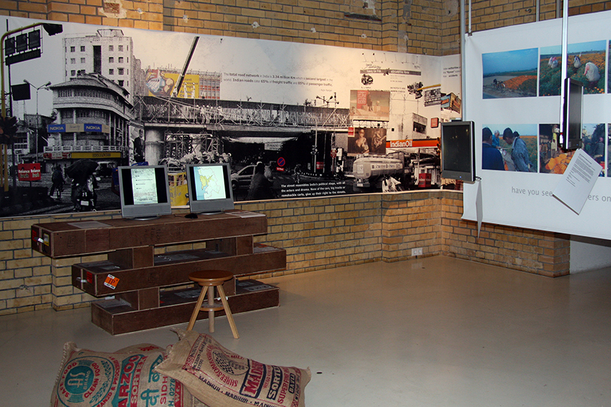 Investigated in the first exhibition gallery under the title “Screened and Narrated Urbanism” will be links between urbanization and cultural change. Audiovisual installations will generate images, sounds, and voices relating to various urban situations, for example to Gurgaon, the special economic zone set directly at the fringes of New Delhi. By means of 20 different projects, the visitors to the exhibition will be offered views into a variety of inhabited environments – from Indian streets to new highways, from emerging satellite cities to impressive skylines – and hence create an impression of the unique spaces and locations offered by urban India.